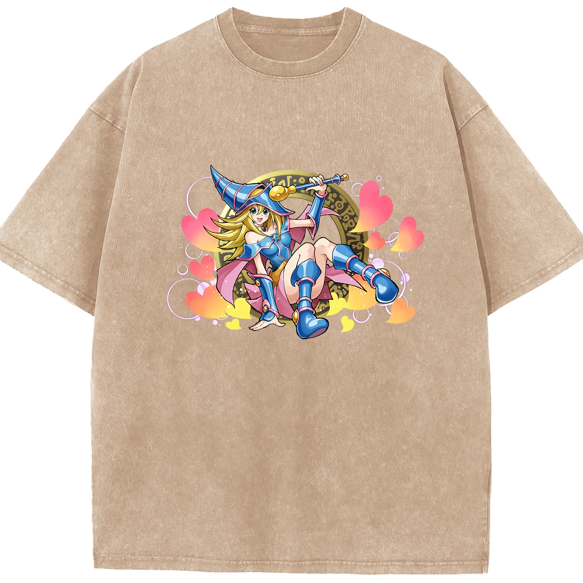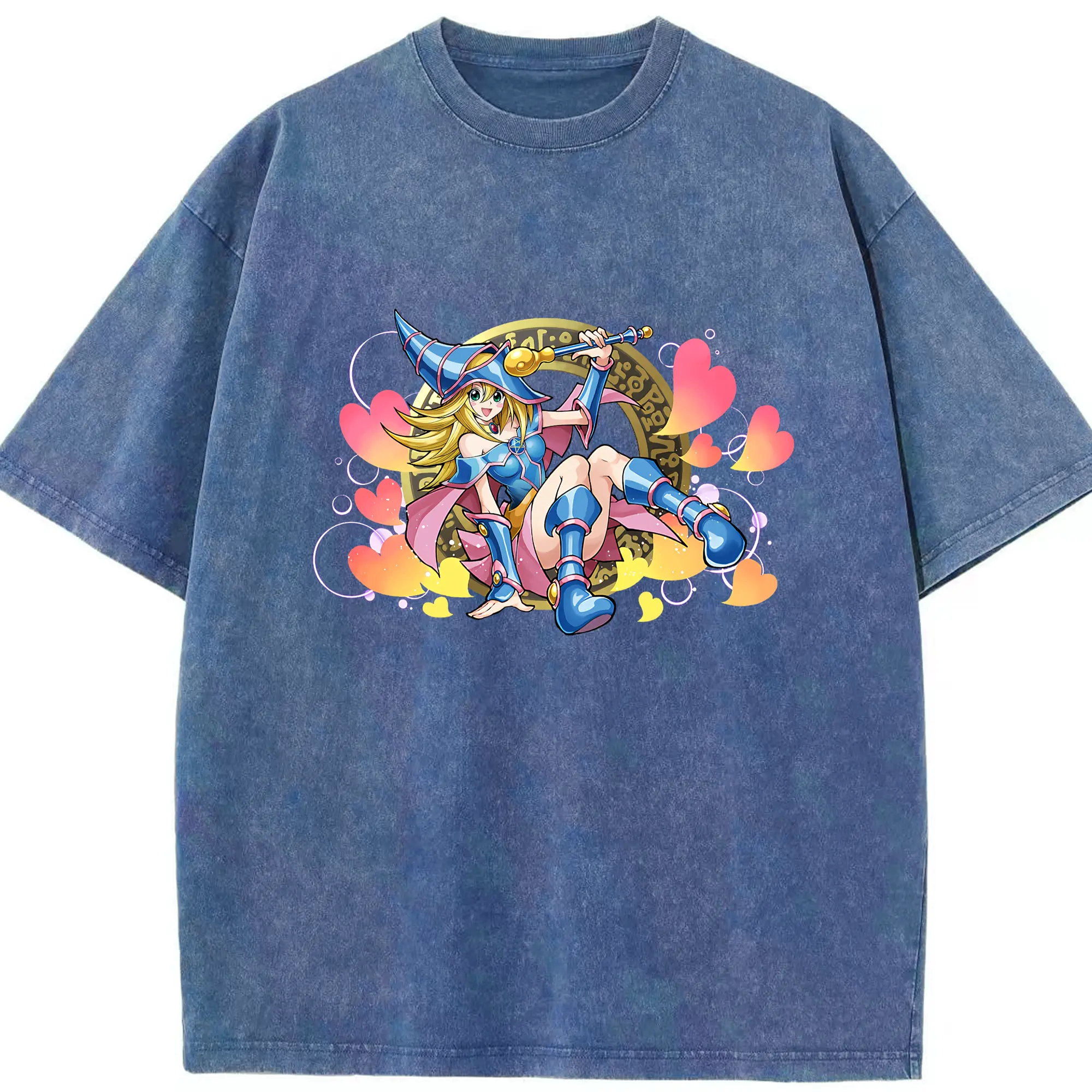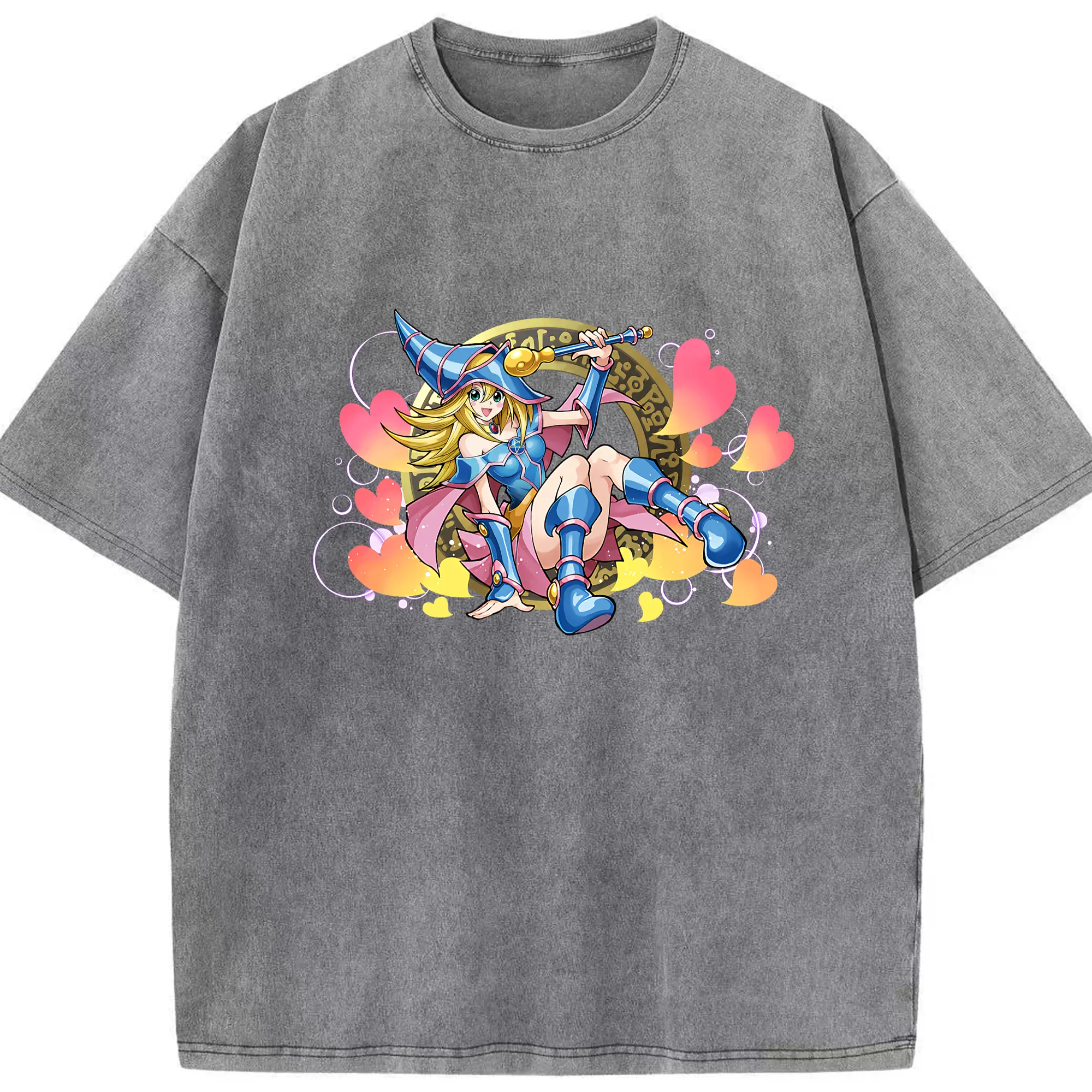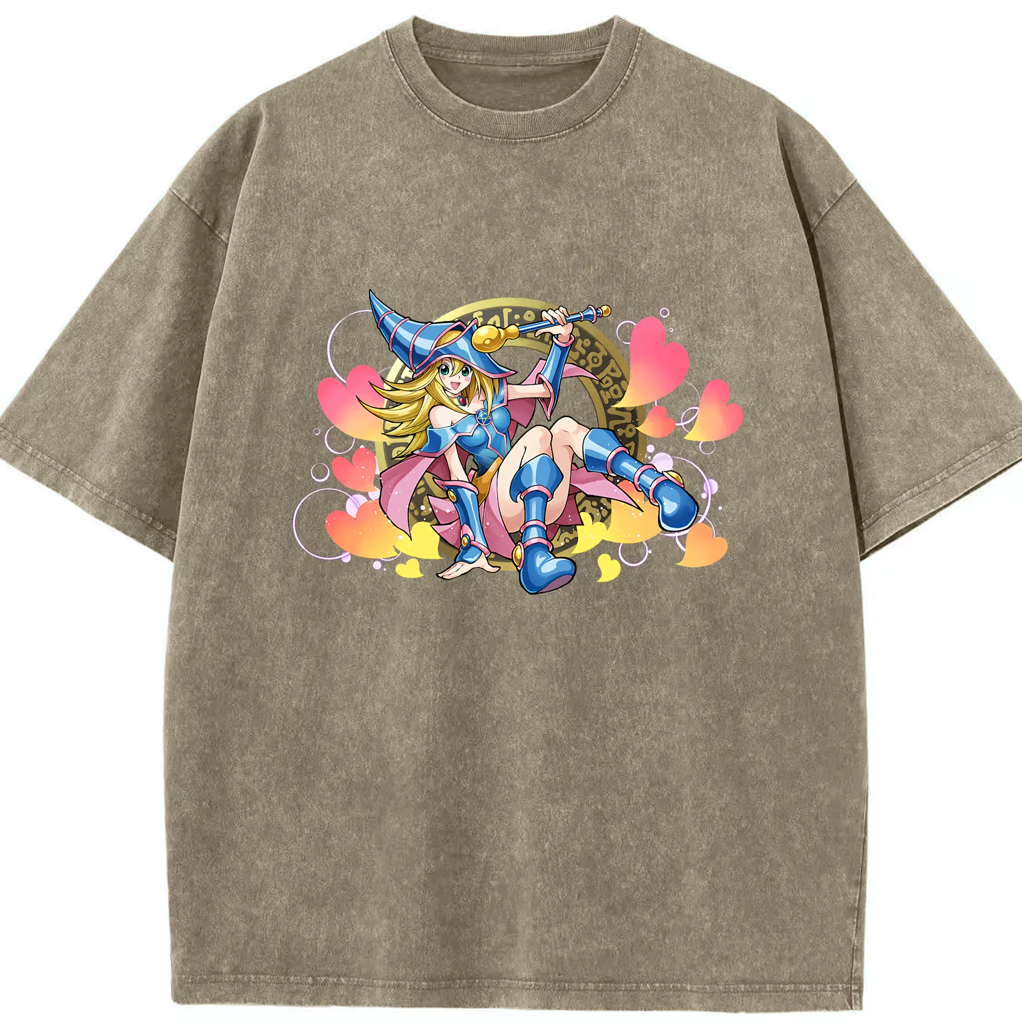 Yu-gi-oh Dark Magician Girl t-shirt - Washed Vintage Look 230g Cotton Oversized T-Shirt With Front Heat Transfer Print – Soft, Lightweight, Stylish Fit – Comfortable Casual Wear For Sports & Everyday Use