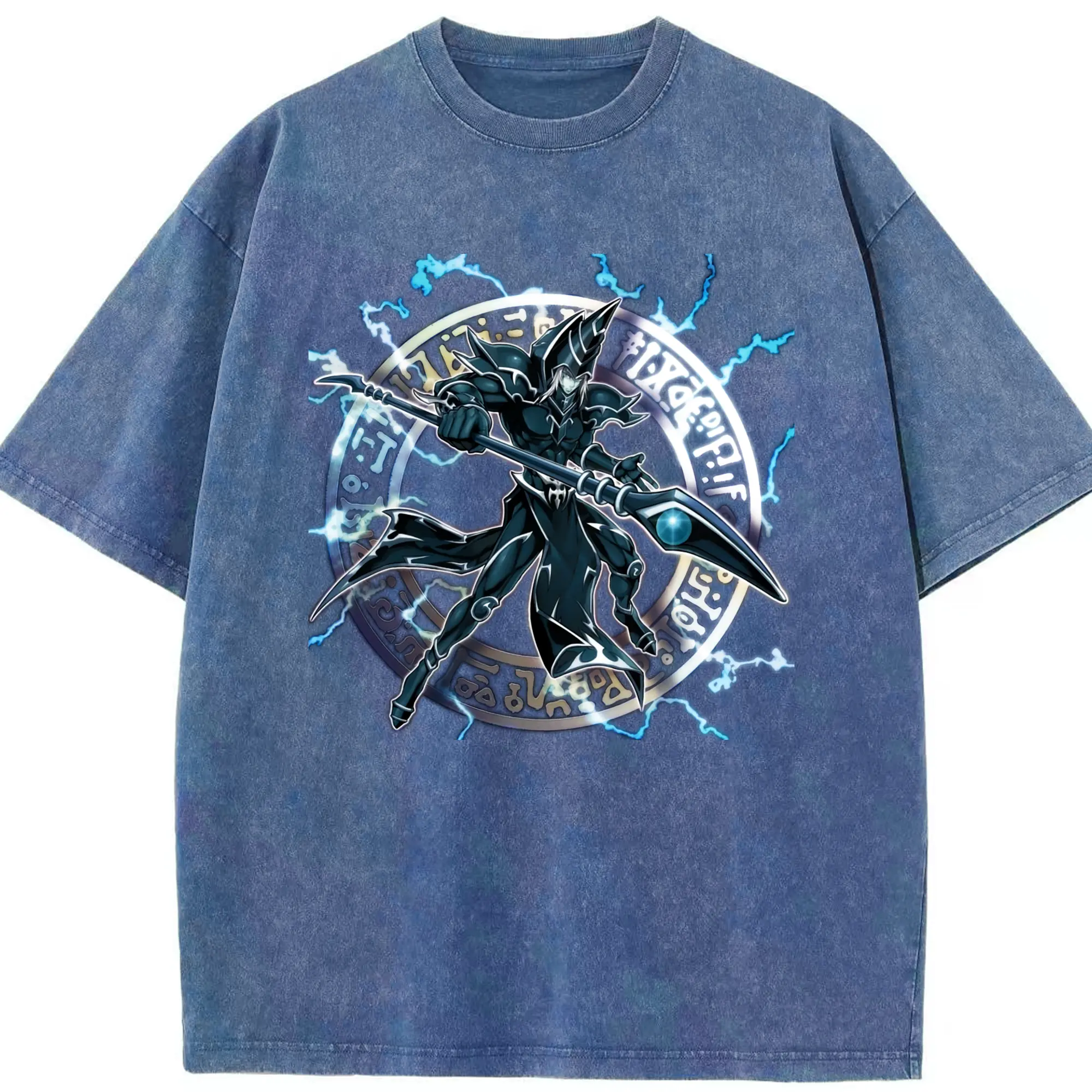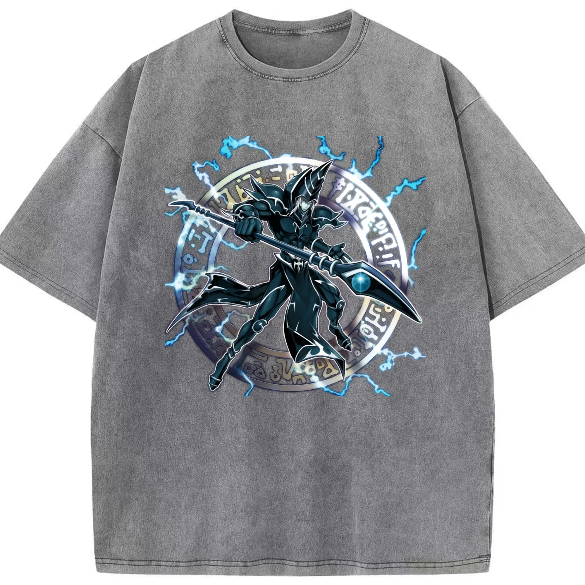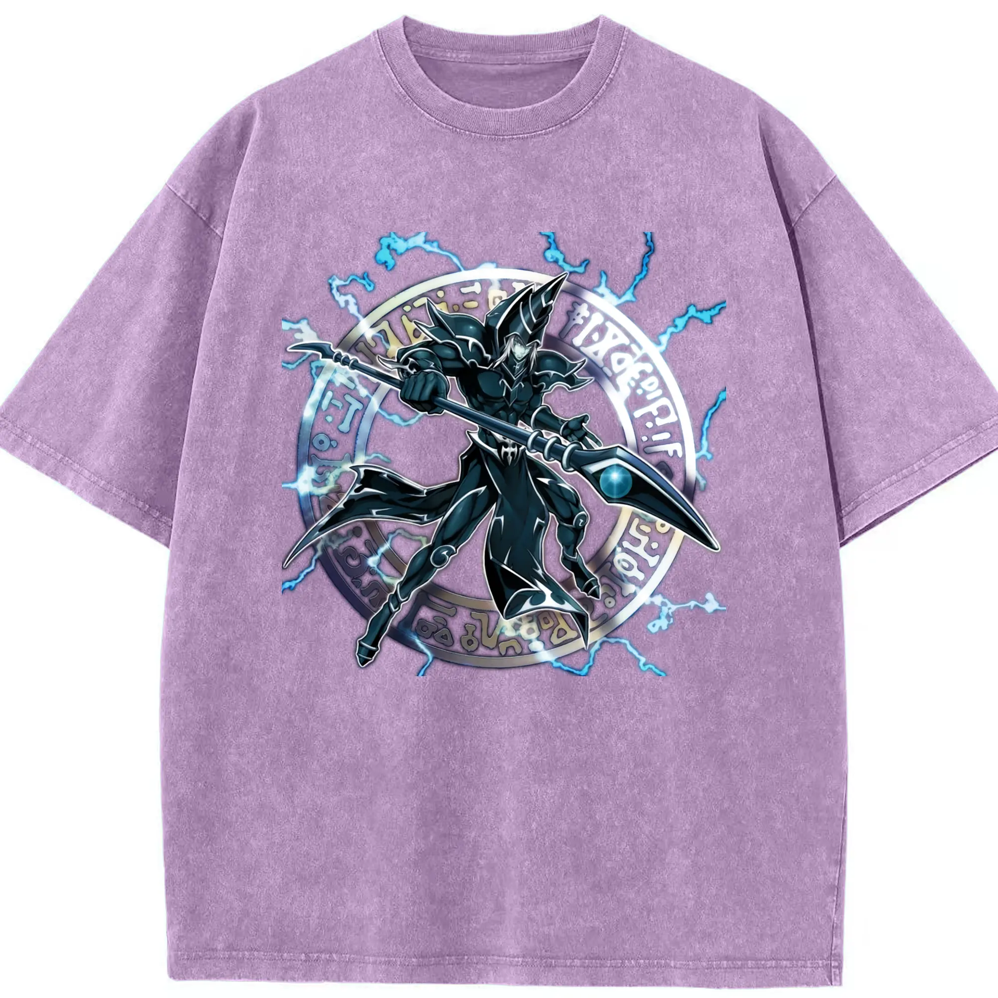 Yu-gi-oh Dark Magician graphic shirt​ - Washed Vintage Look 230g Cotton Oversized T-Shirt With Front Heat Transfer Print – Soft, Lightweight, Stylish Fit – Comfortable Casual Wear For Sports & Everyday Use