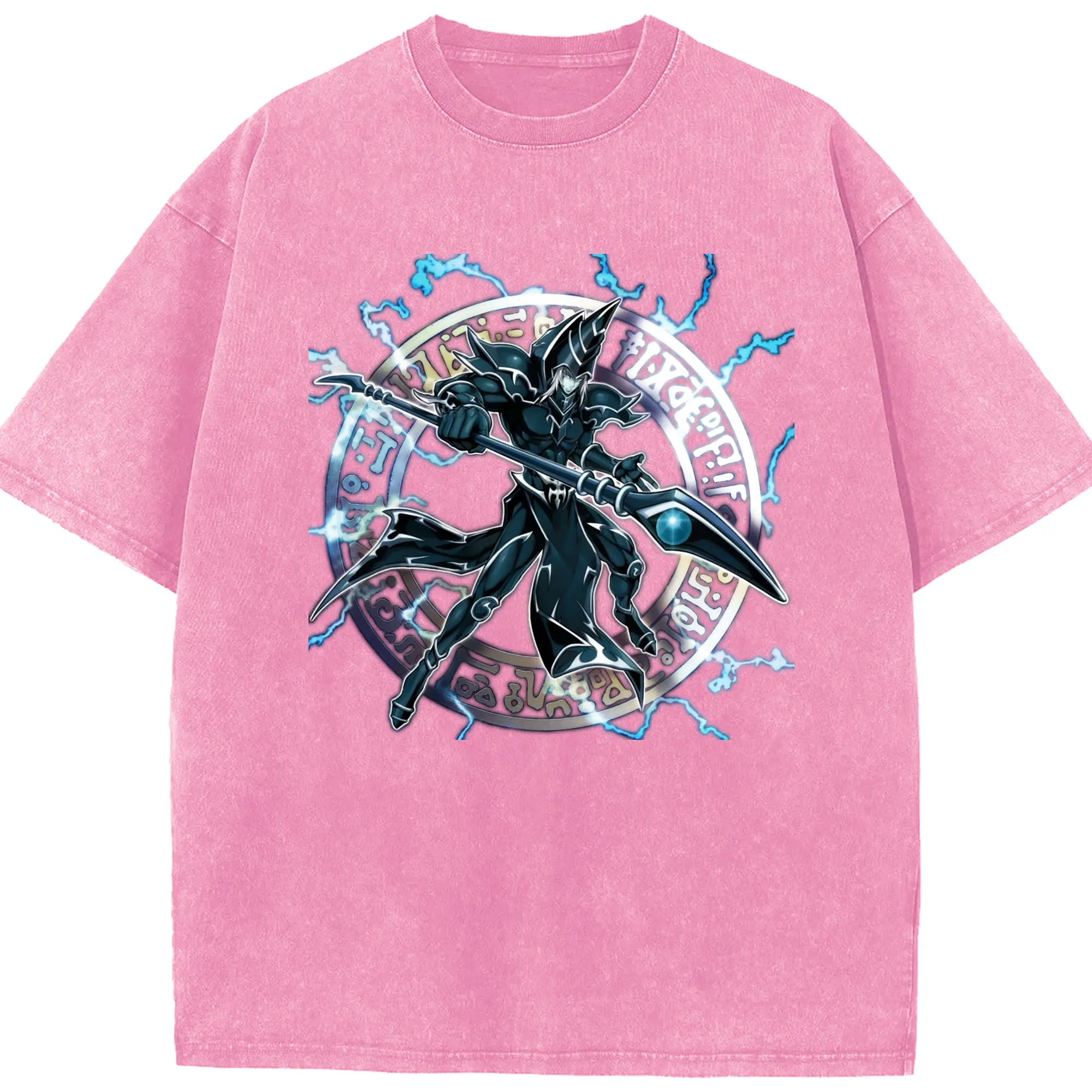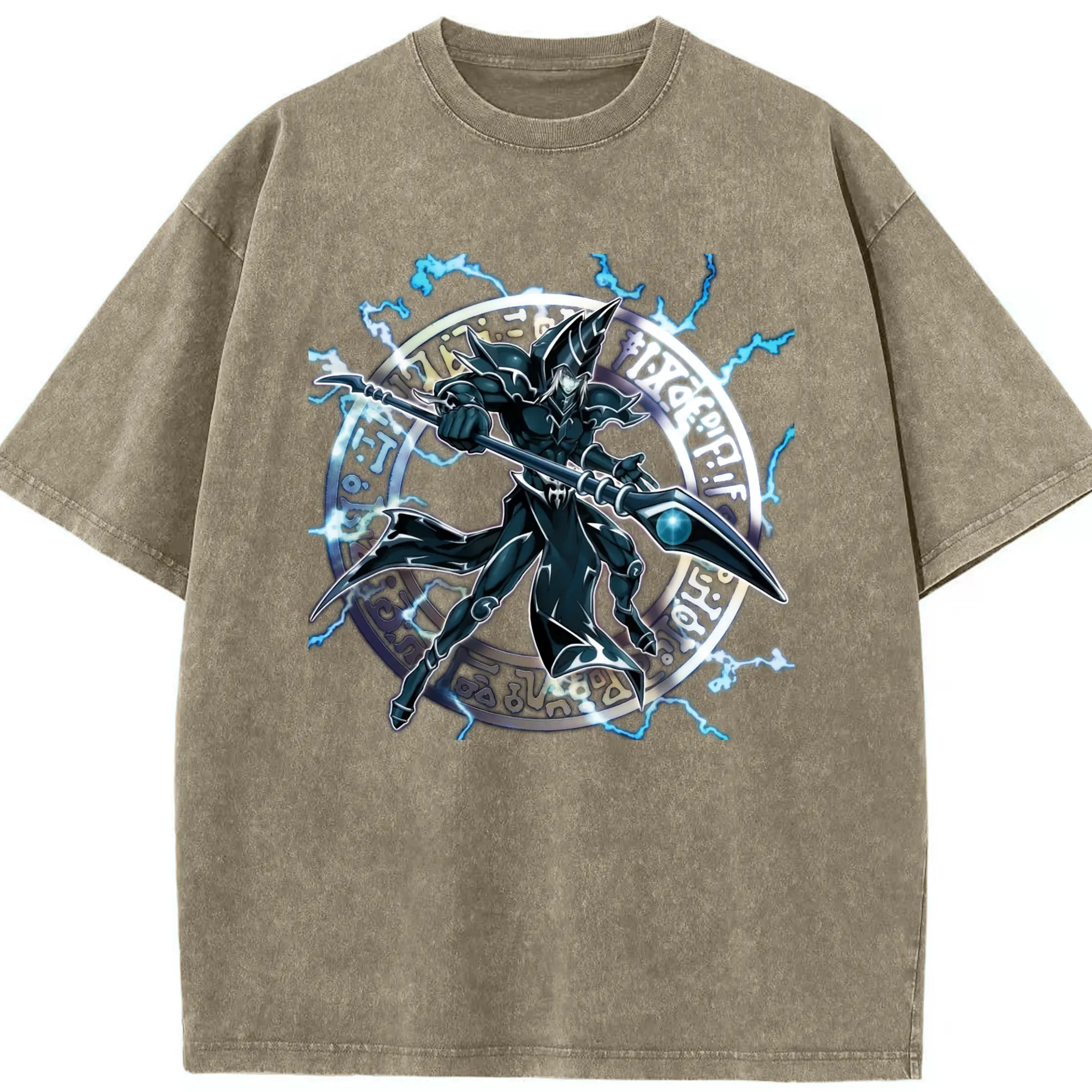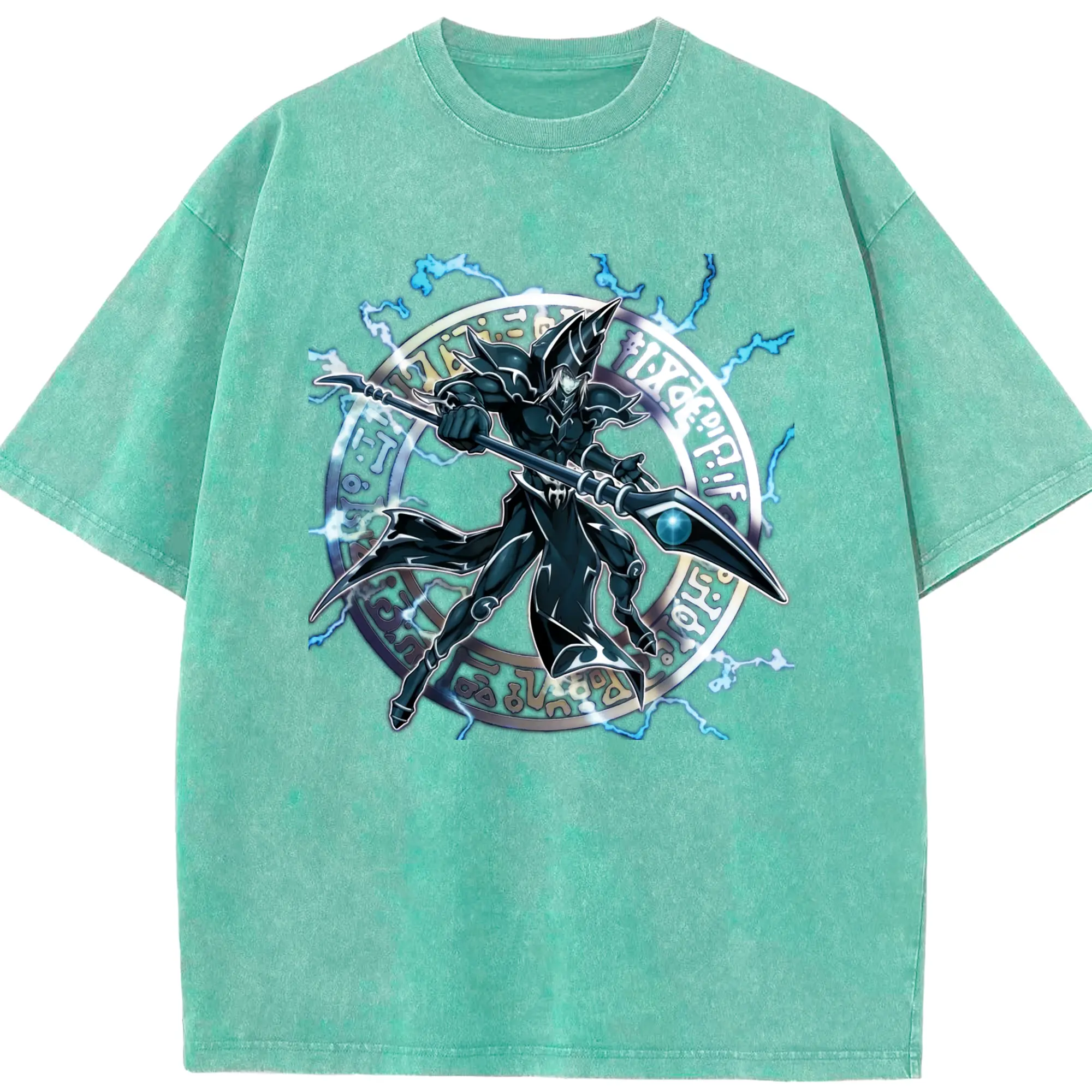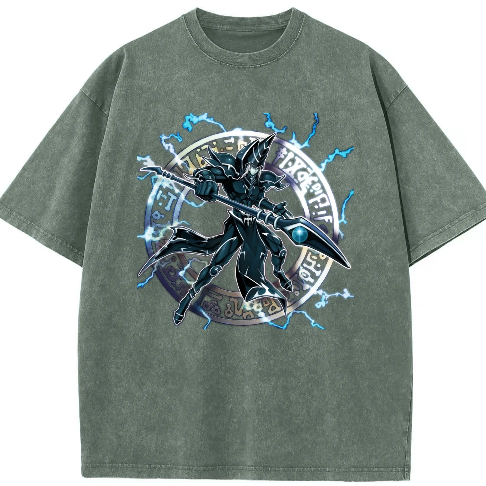 Yu-gi-oh Dark Magician graphic shirt​ - Washed Vintage Look 230g Cotton Oversized T-Shirt With Front Heat Transfer Print – Soft, Lightweight, Stylish Fit – Comfortable Casual Wear For Sports & Everyday Use
