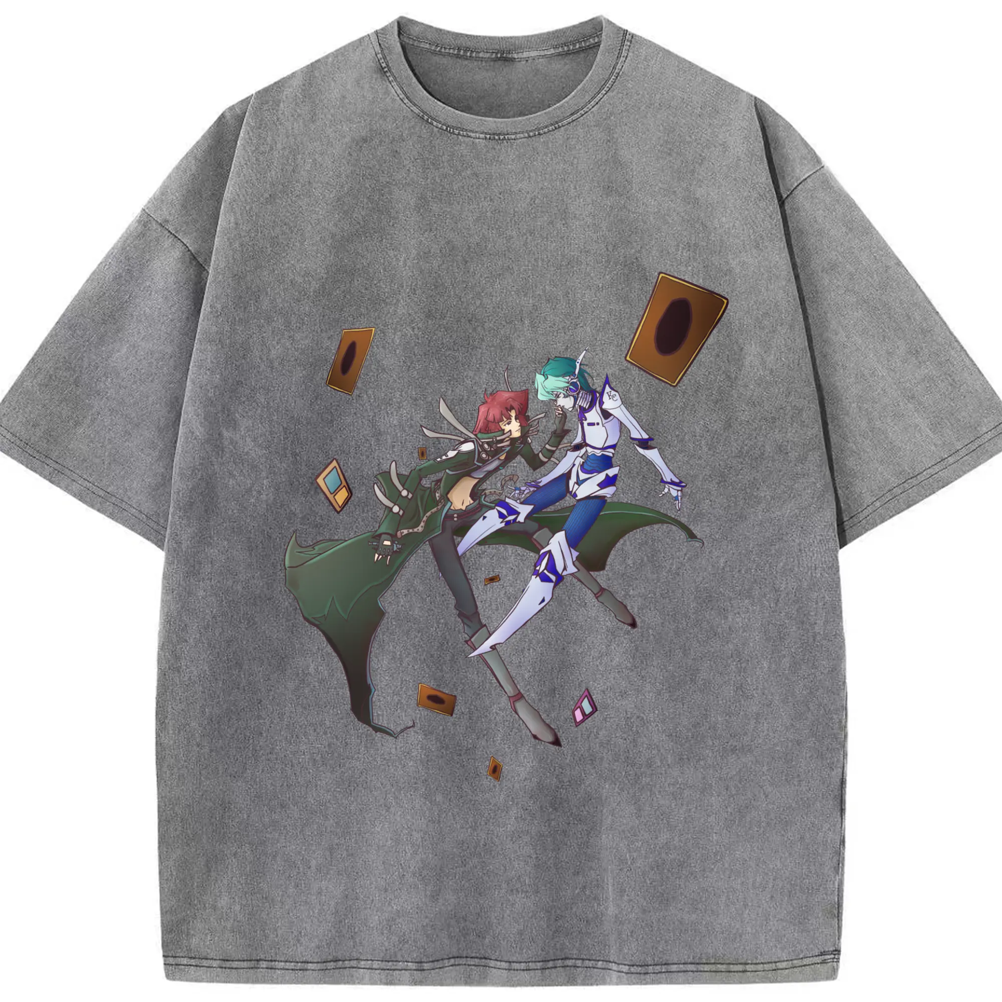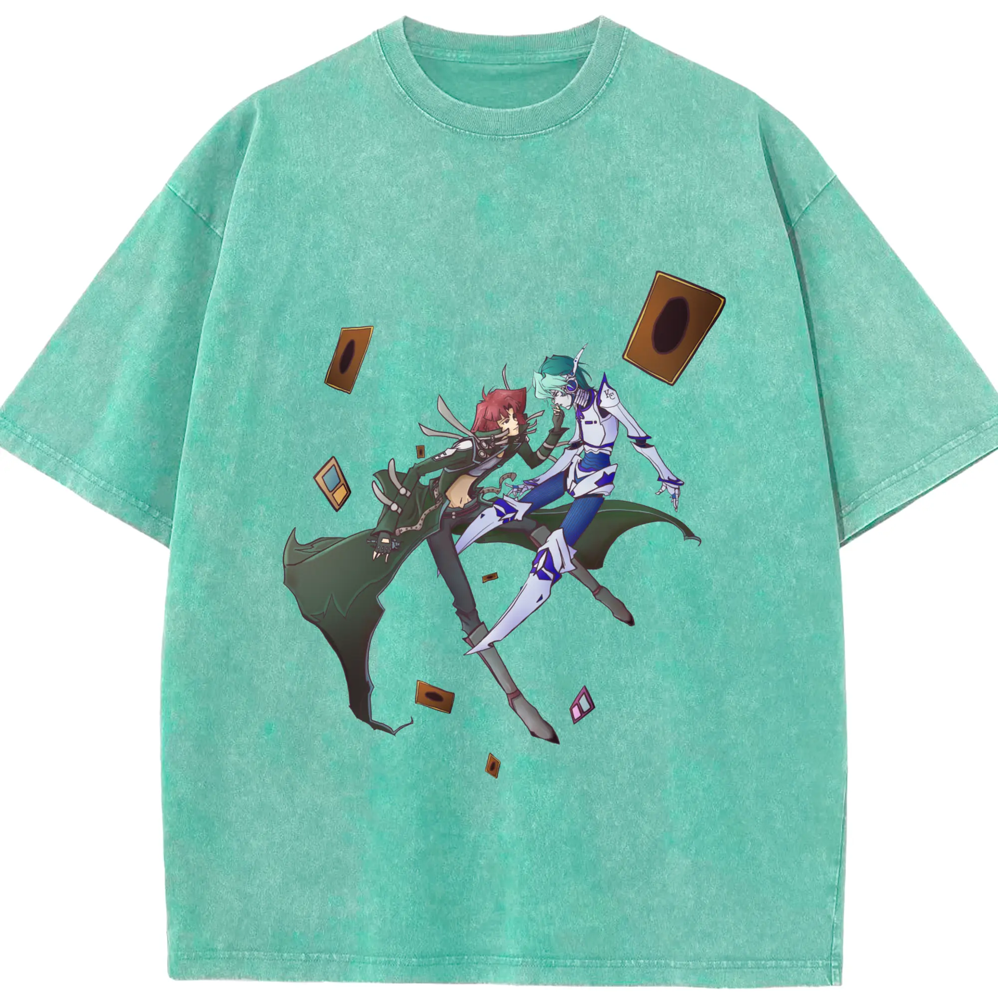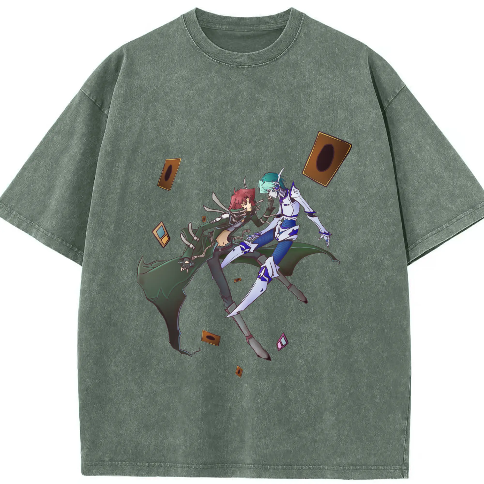 Yu-gi-oh graphic tee - Washed Vintage Look 230g Cotton Oversized T-Shirt With Front Heat Transfer Print – Soft, Lightweight, Stylish Fit – Comfortable Casual Wear For Sports & Everyday Use