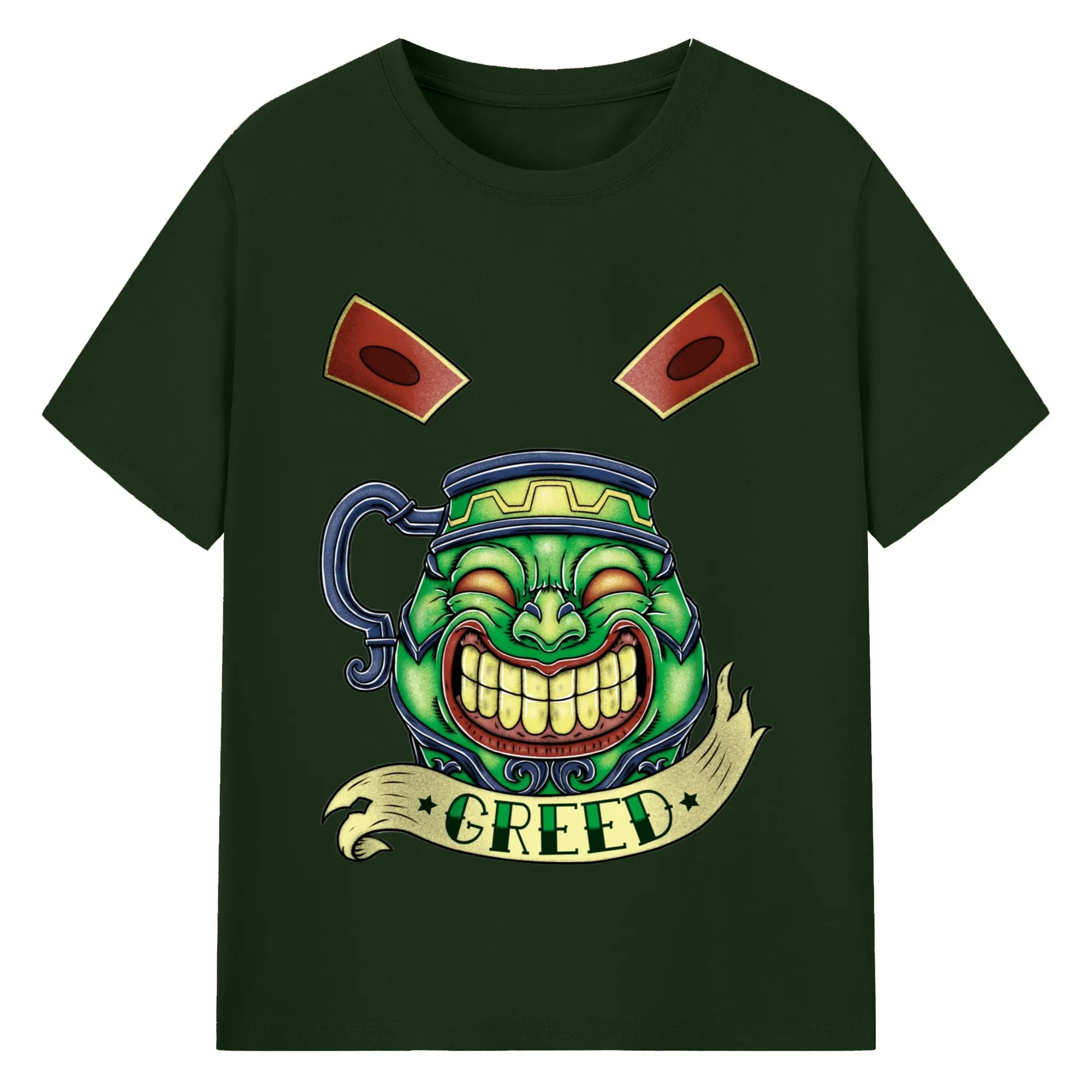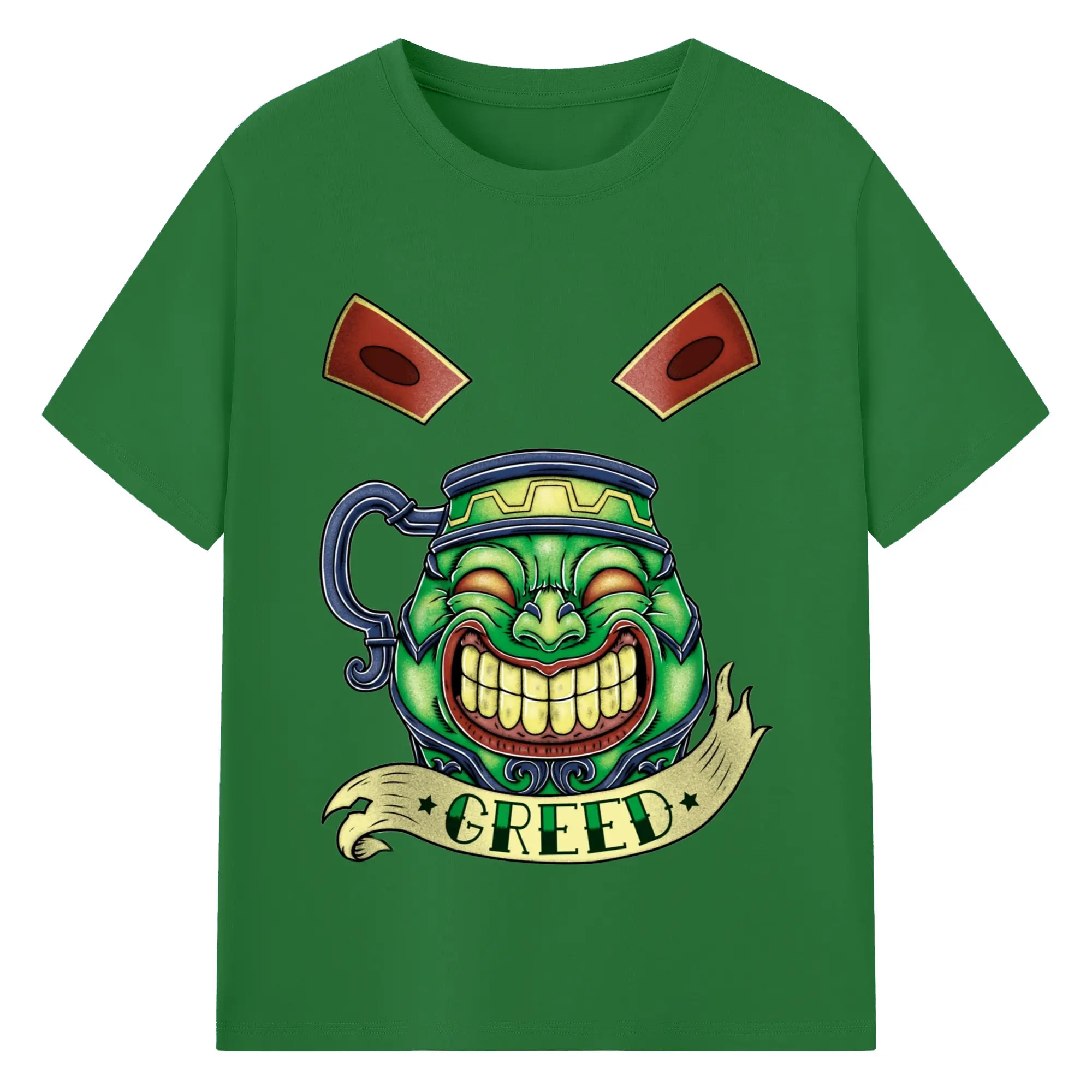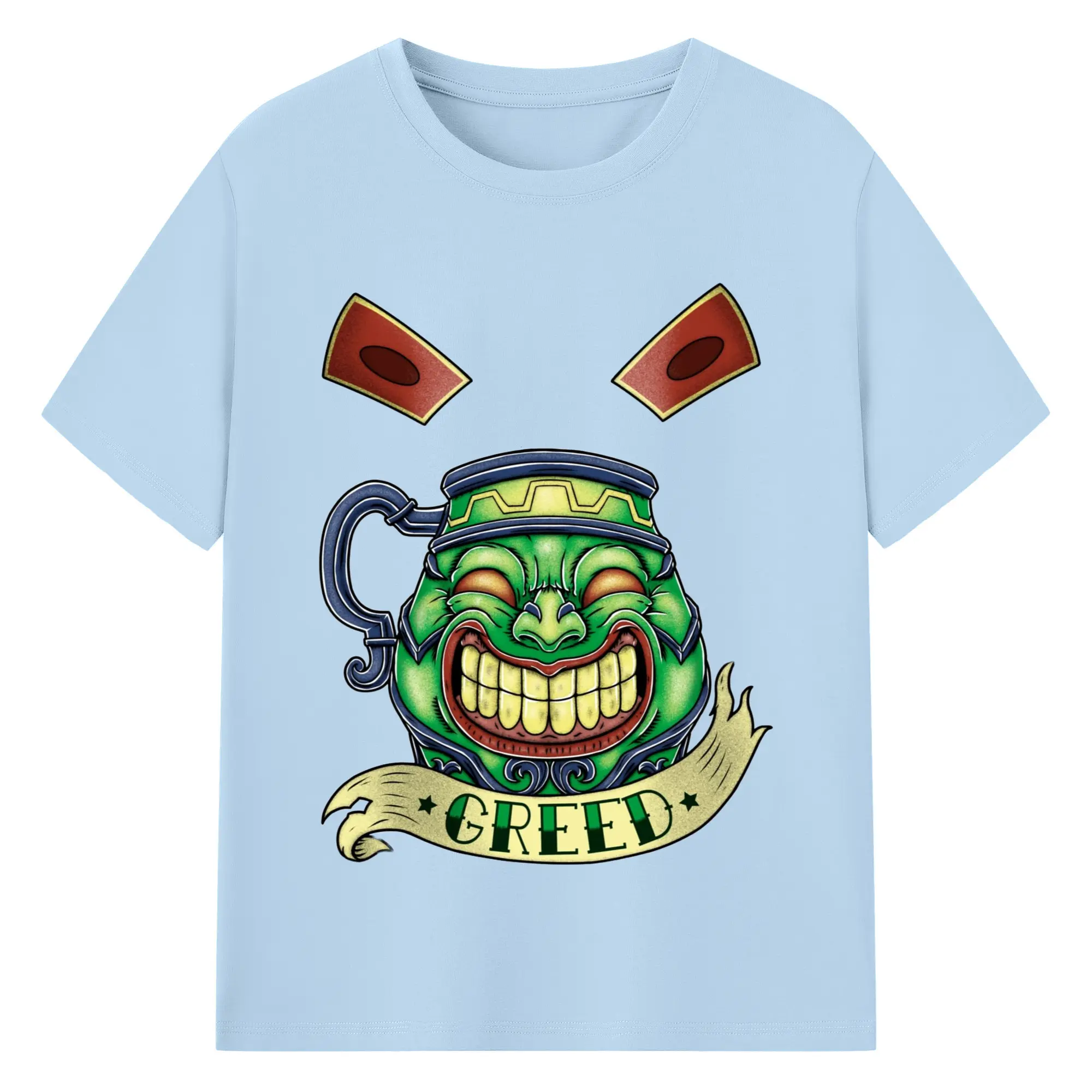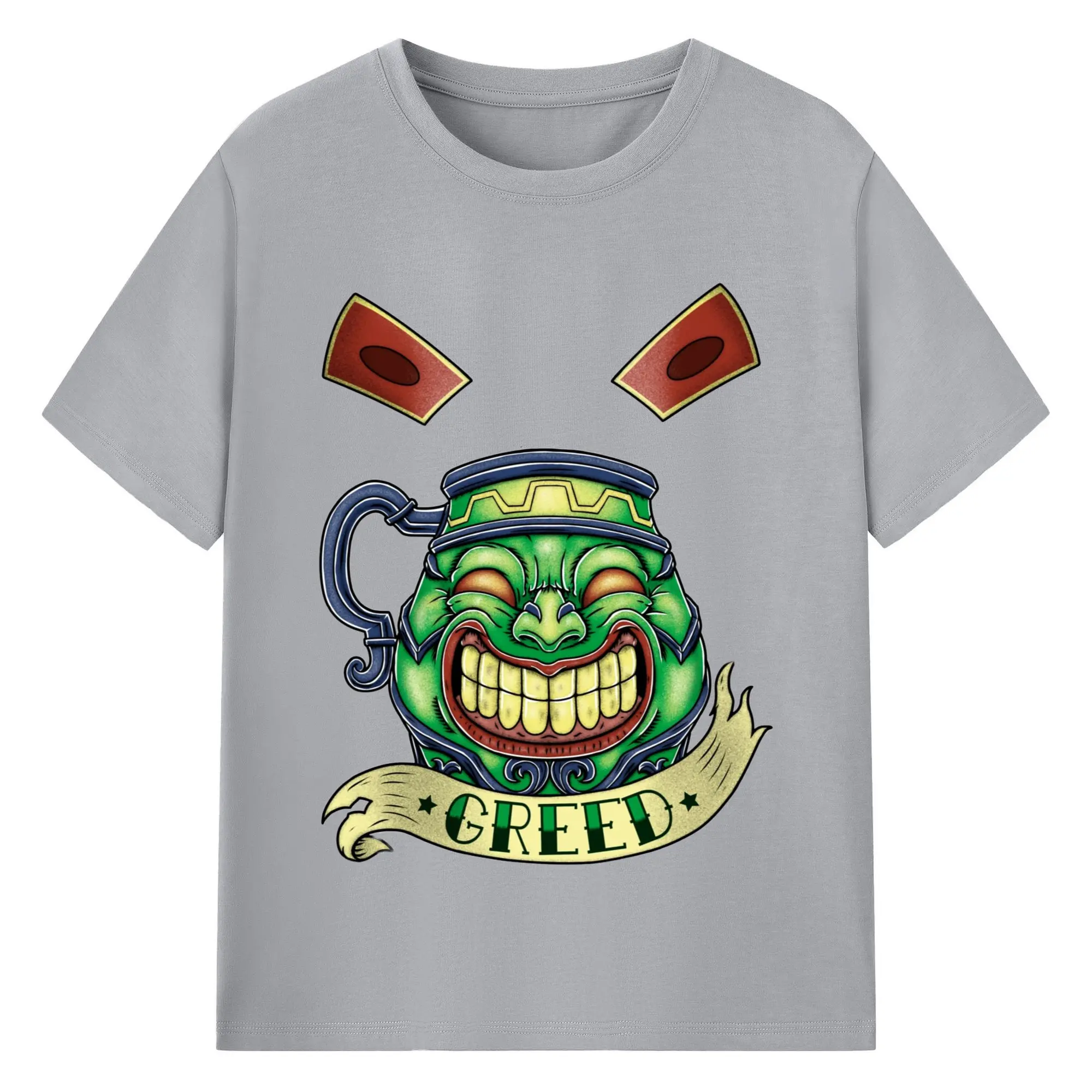 Yu-gi-oh greed graphic shirt​ - 180g Cotton T-Shirt With Front Heat Transfer Print – Soft, Lightweight, Fitted Design – Comfortable Casual Wear For Sports & Everyday Use