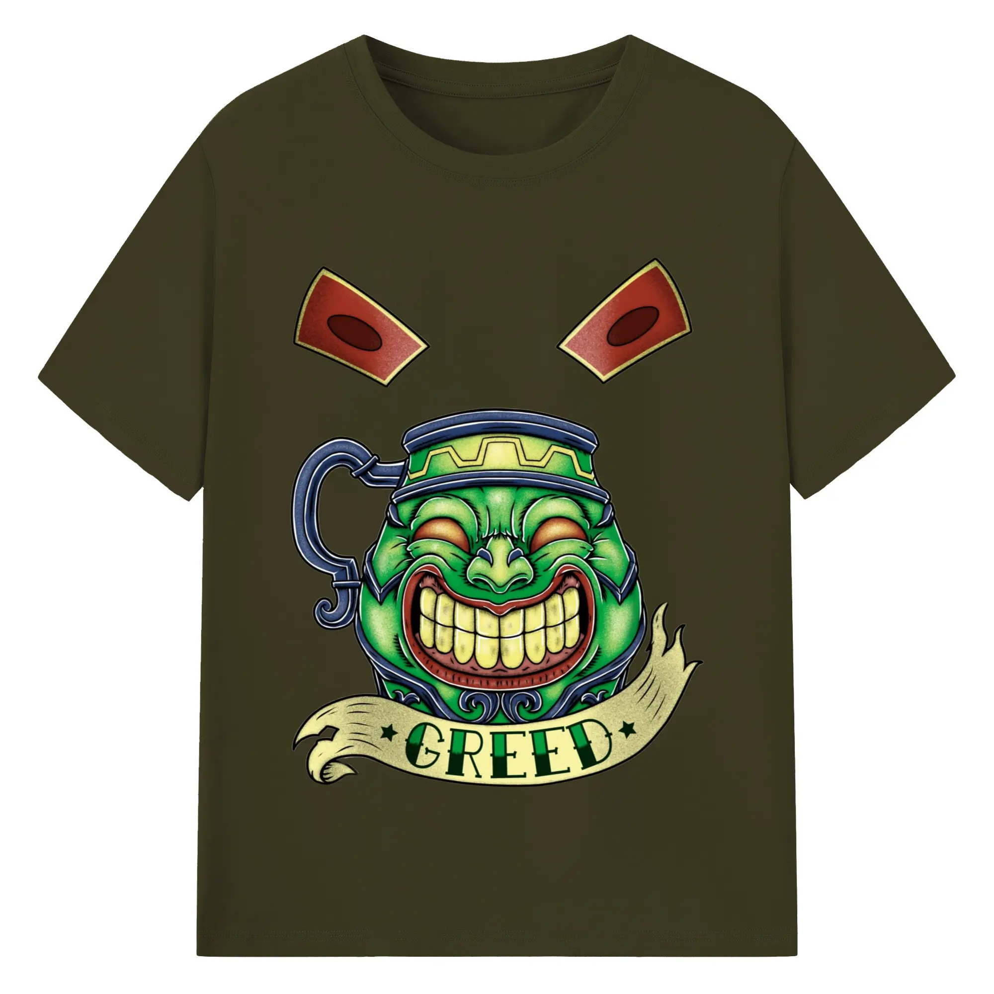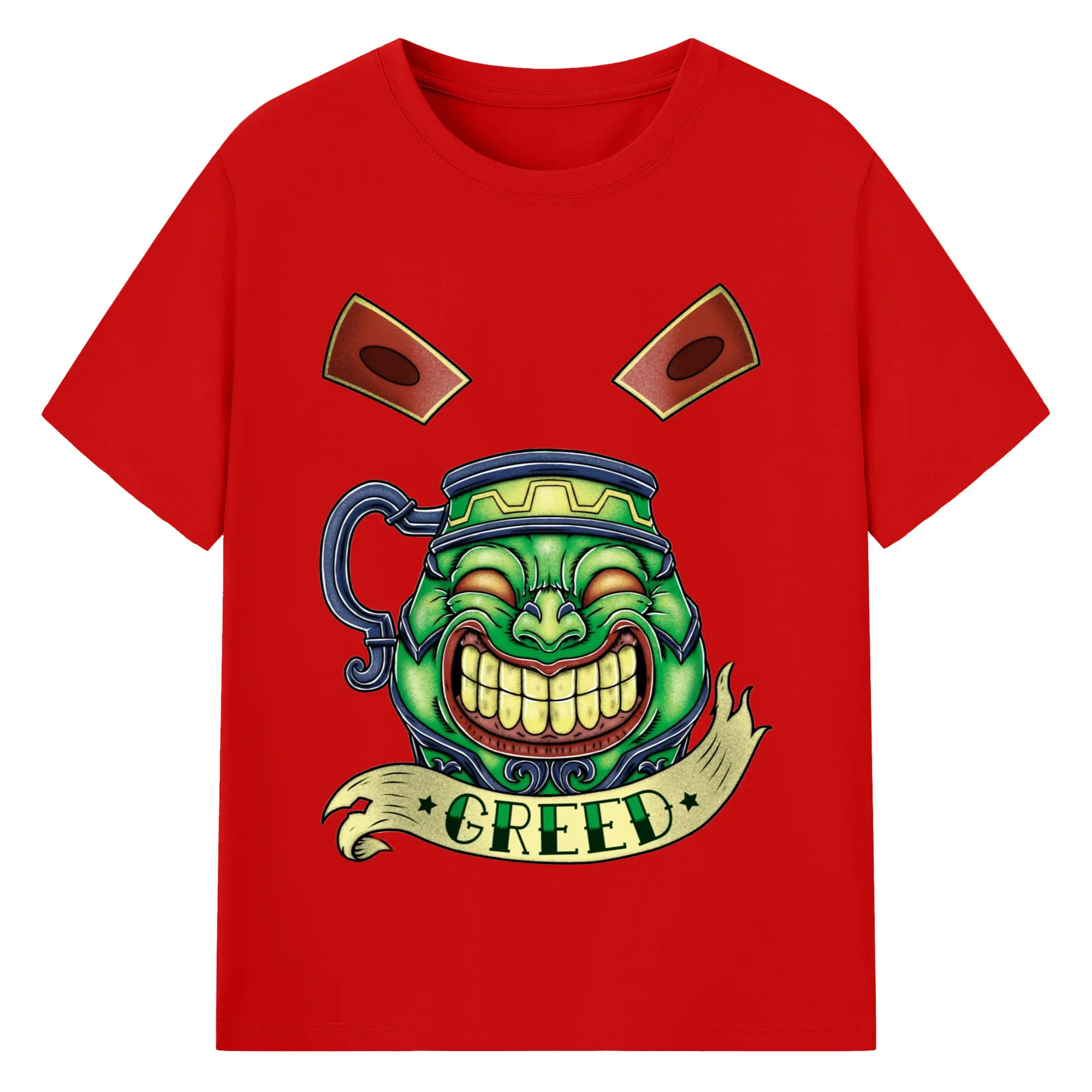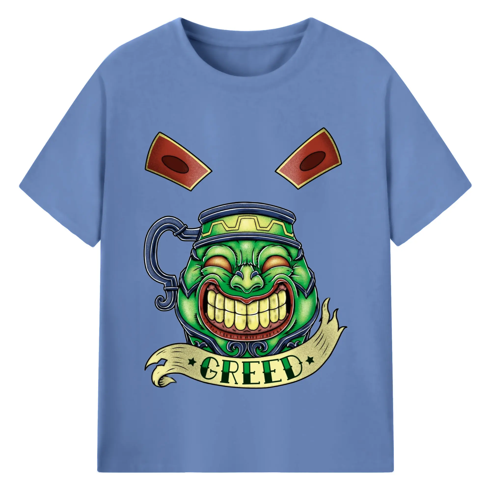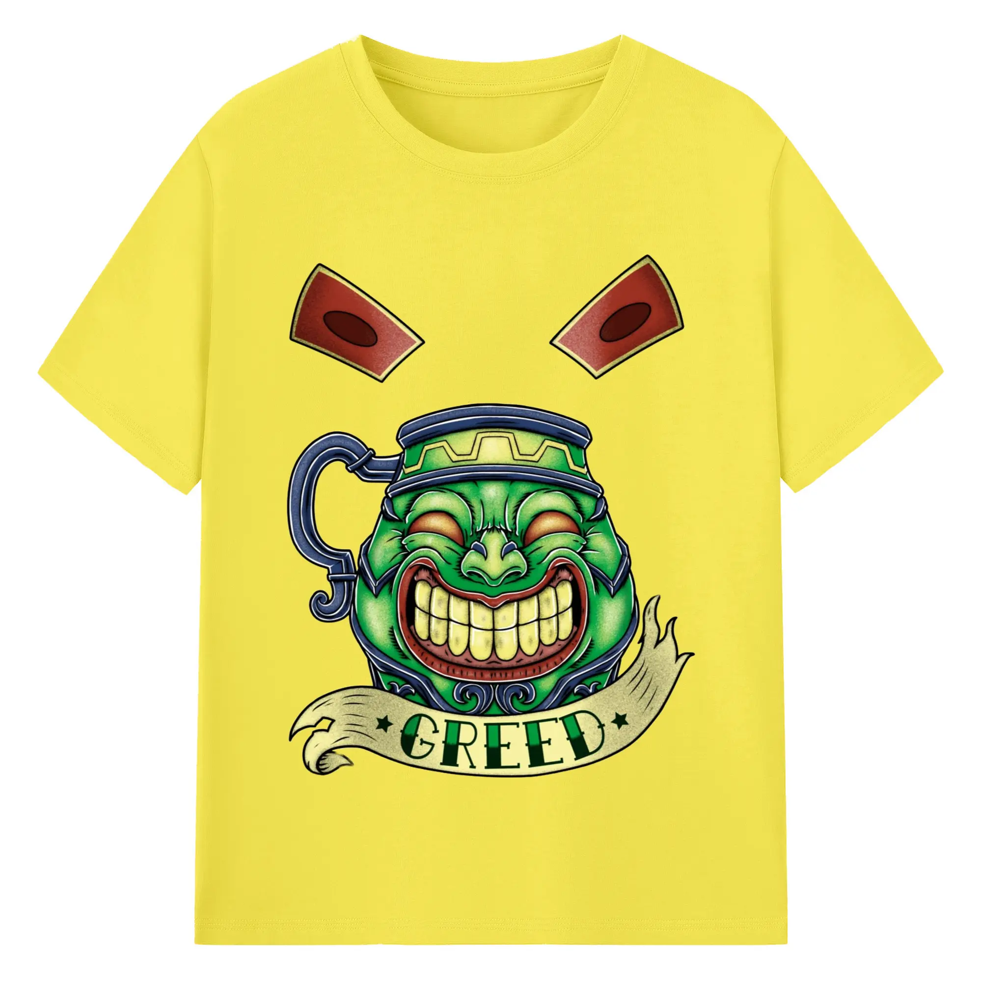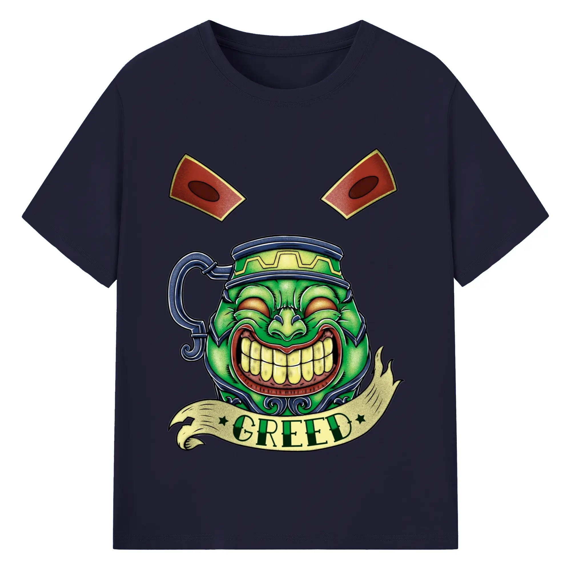 Yu-gi-oh greed graphic shirt​ - 180g Cotton T-Shirt With Front Heat Transfer Print – Soft, Lightweight, Fitted Design – Comfortable Casual Wear For Sports & Everyday Use