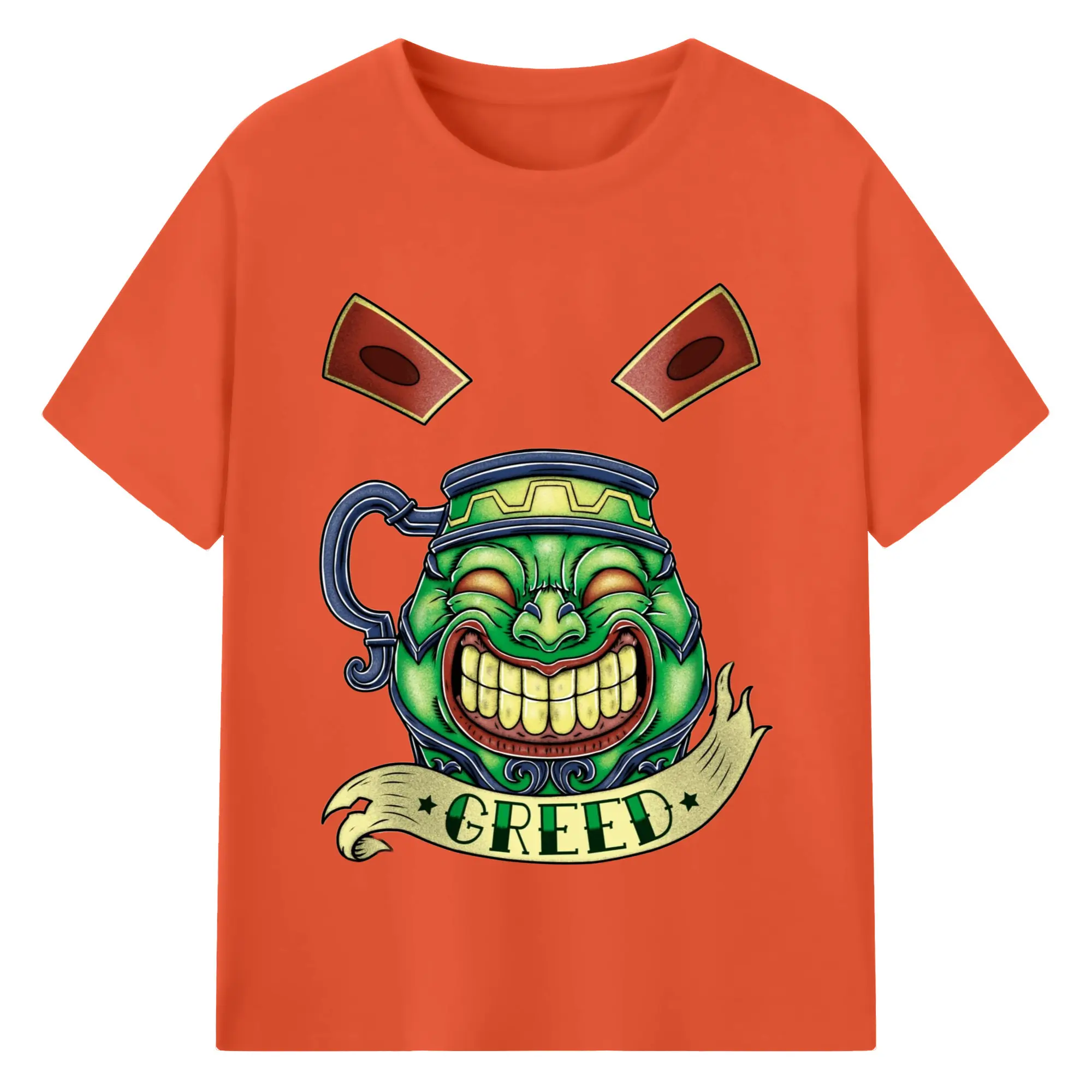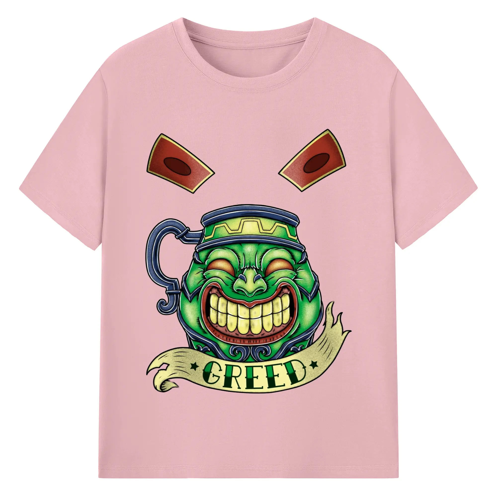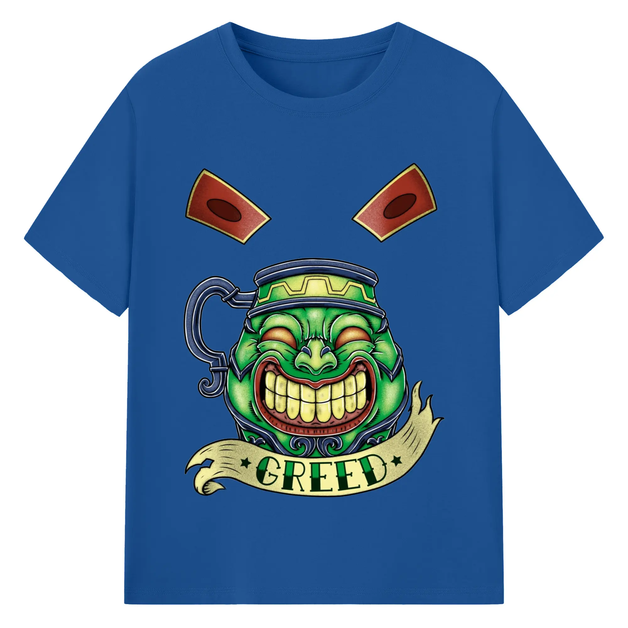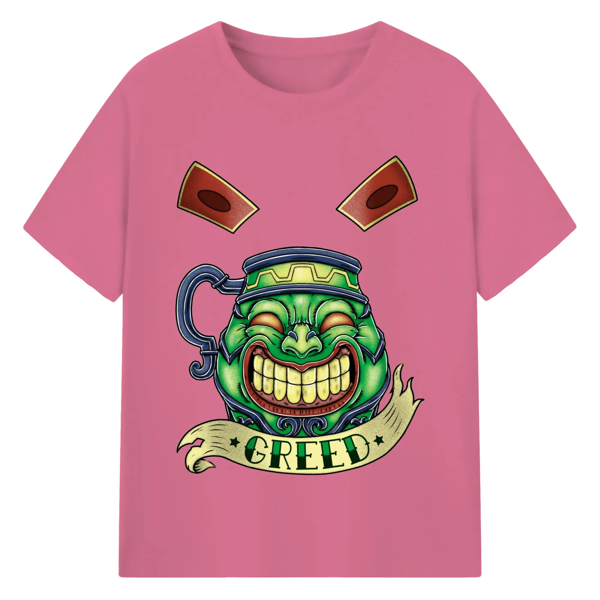 Yu-gi-oh greed graphic shirt​ - 180g Cotton T-Shirt With Front Heat Transfer Print – Soft, Lightweight, Fitted Design – Comfortable Casual Wear For Sports & Everyday Use