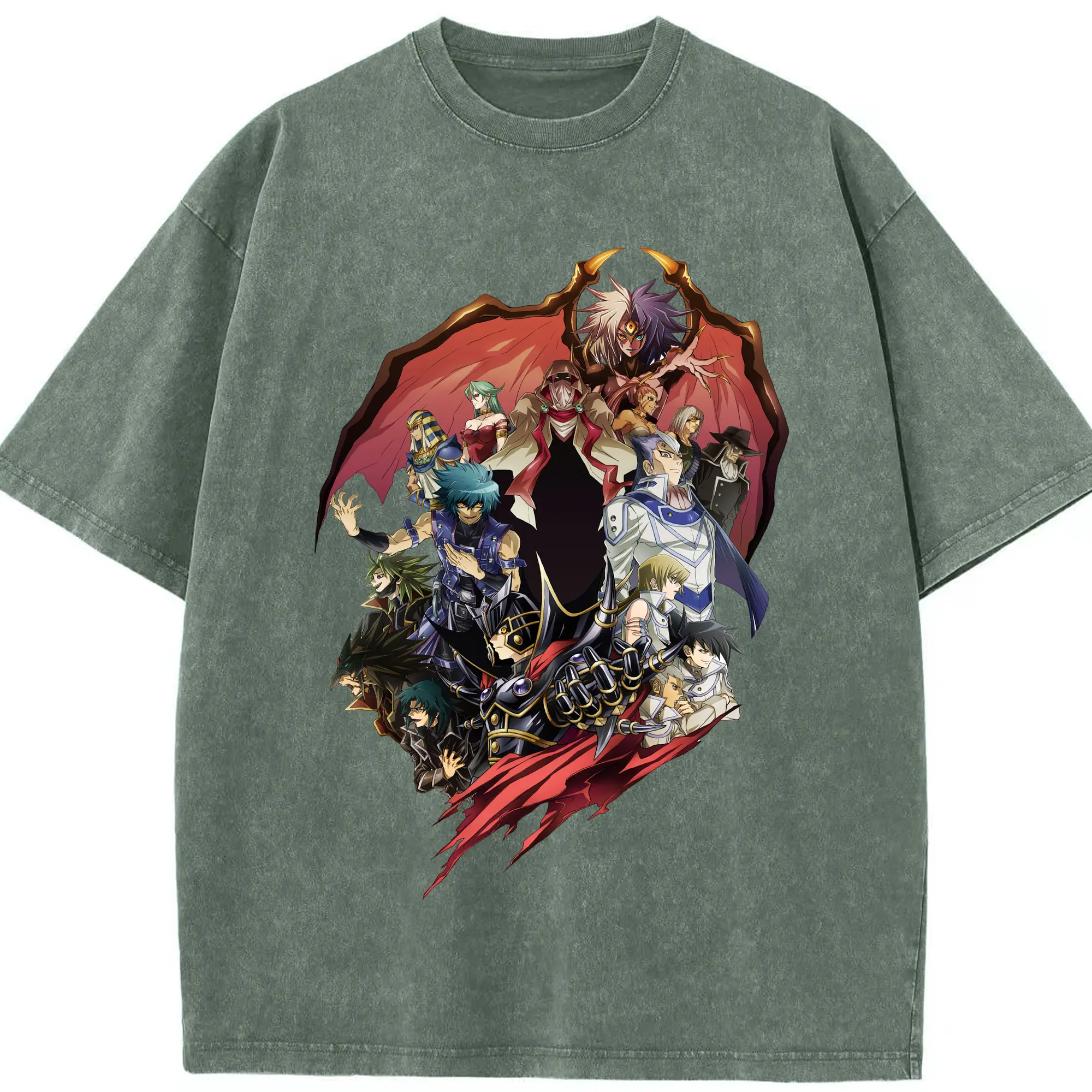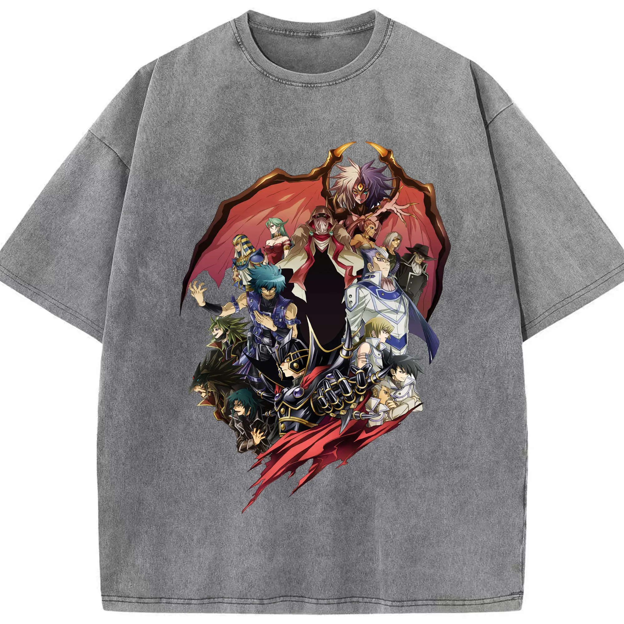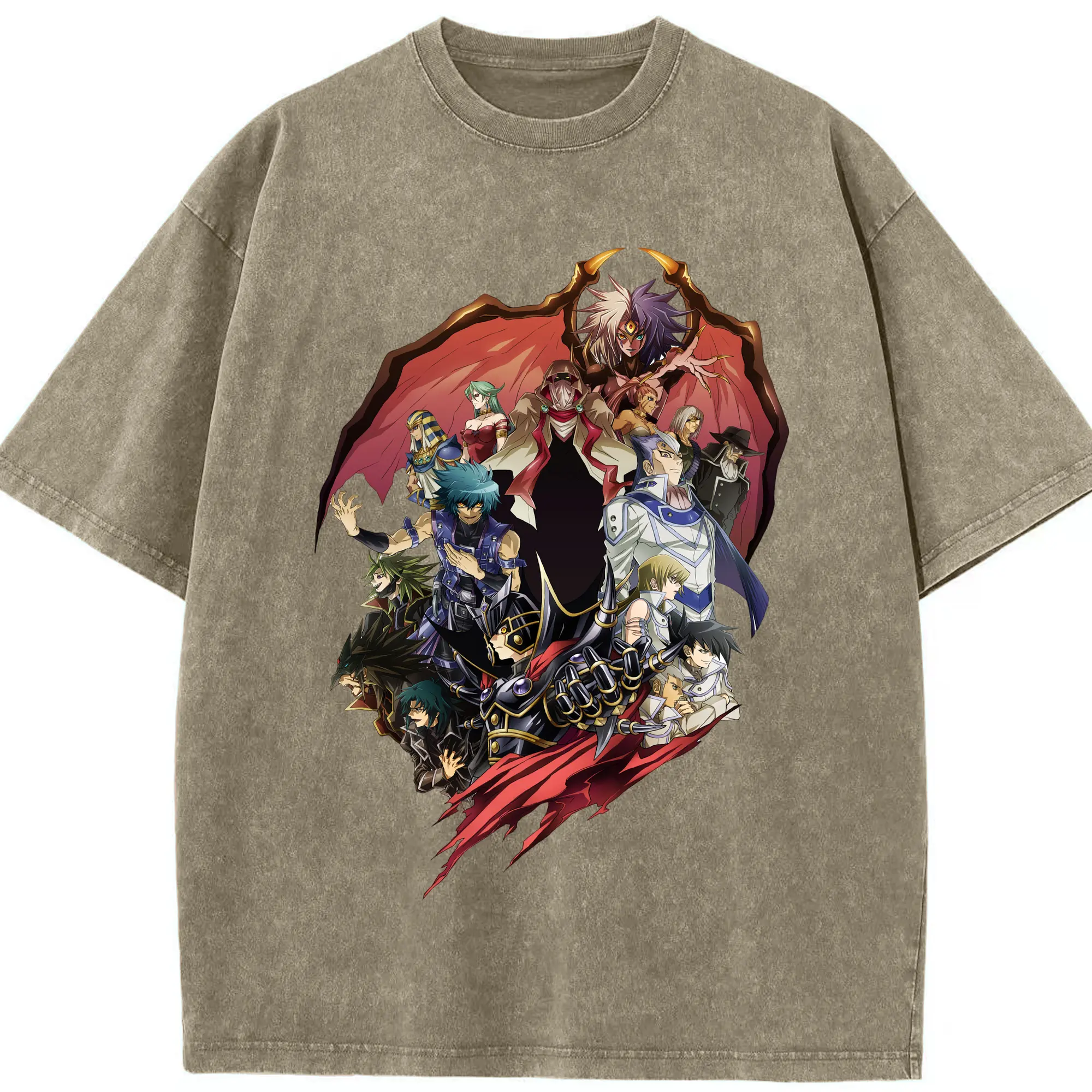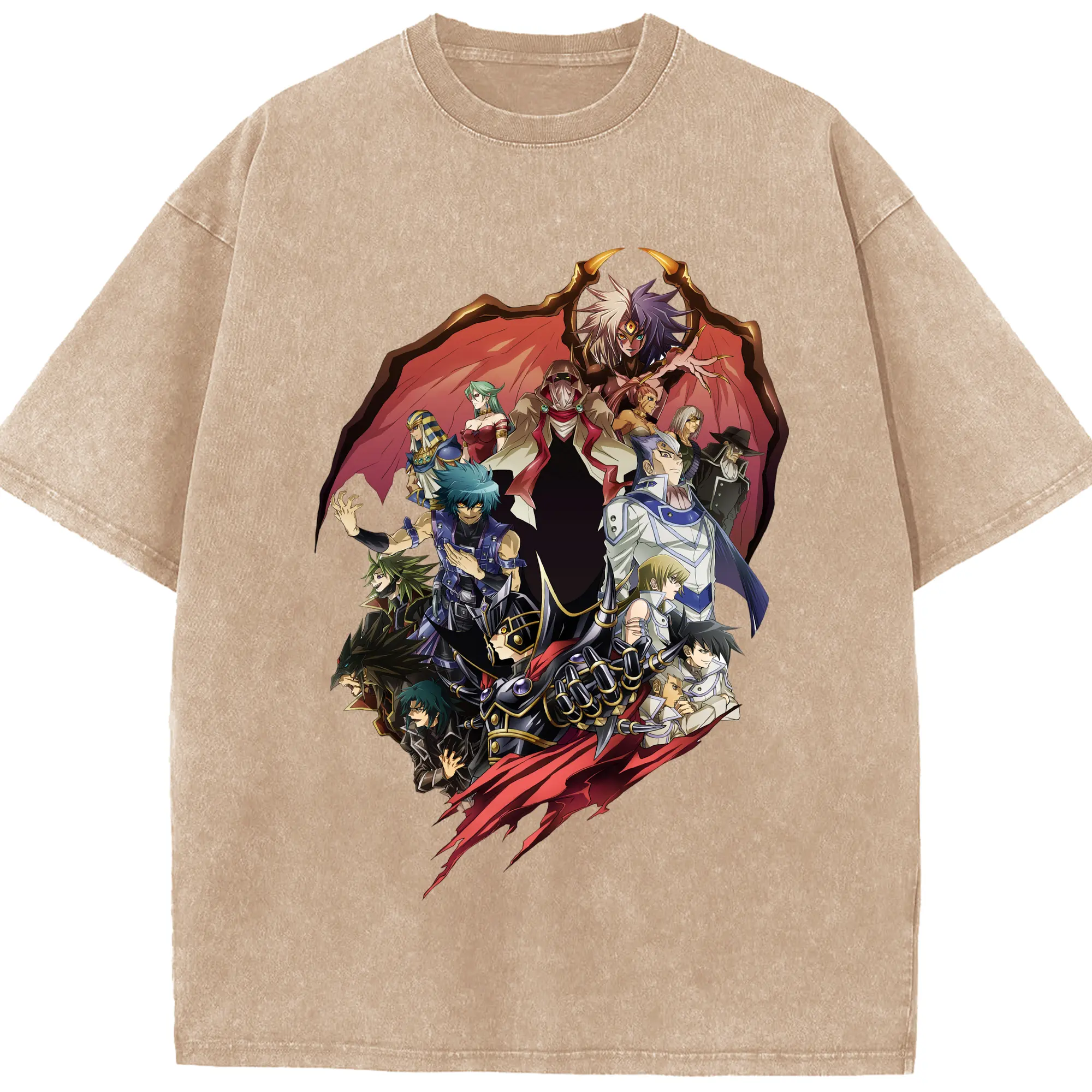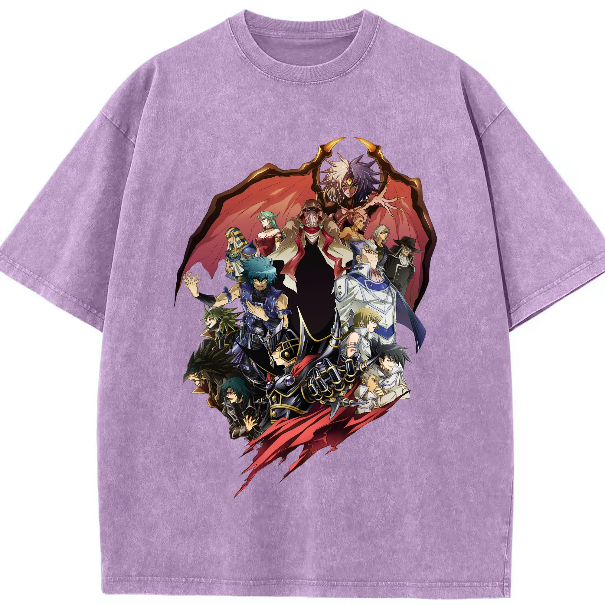 Yu-gi-oh GX graphic shirt​ - Washed Vintage Look 230g Cotton Oversized T-Shirt With Front Heat Transfer Print – Soft, Lightweight, Stylish Fit – Comfortable Casual Wear For Sports & Everyday Use